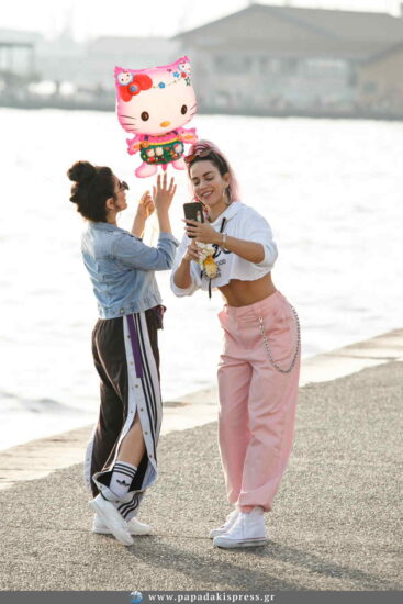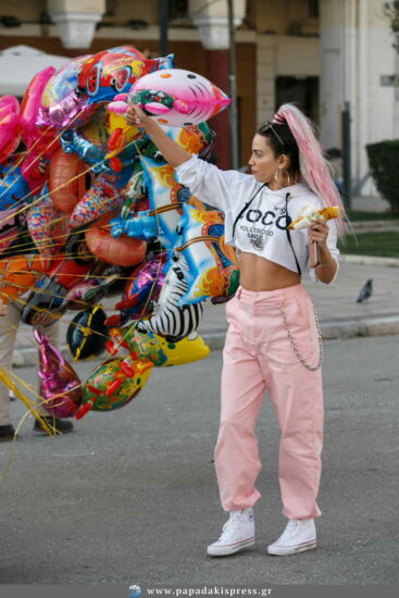 Σαν μικρό κορίτσι, περπάτησε στους δρόμους της πόλης, αγόρασε ζεστό καλαμπόκι από τον πλανόδιο πωλητή, τάισε τα περιστέρια και τέλος αγόρασε ένα ροζ μπαλόνι HELLO KITTY. Με τη φίλη που τη συνόδευσε στη βόλτα της κάθησαν στο πλακόστρωτο για κοριτσοκουβέντα και για να έχουν ένα ενθύμιο από τη συνάντησή τους έβγαλαν και την επιβεβλημένη selfie. “Μη βιαστείς να μεγαλώσεις” τραγουδά η Κατερίνα Στικούδη και φαίνεται να το εφαρμόζει και στην προσωπική της ζωή.