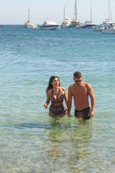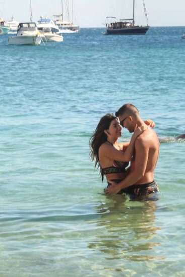 Την Κυριακή και τον Σωκράτη, συνάντησε ο φωτογραφικός μας φακός στην Μύκονο, στην παραλία του Ορνού και συγκεκριμένα στο Pasaji, σε τρυφερά ενσταντανέ που πολλές φορές γίνονταν ιδιαίτερα… καυτά. Αδιαφορώντας για τα βλέμματα που ήταν «καρφωμένα» πάνω τους, οι δύο ερωτευμένοι αντάλλαζαν καυτά φιλιά και αγκαλιές και μας έδειχναν ότι είναι… πλασμένοι ο ένας για τον άλλο.