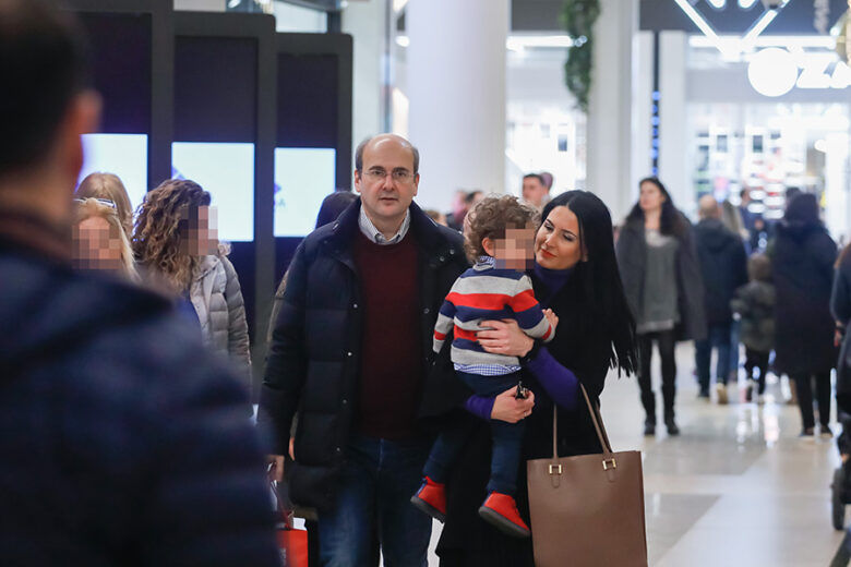 Η οικογένεια απολάμβανε τη βόλτα και τα ψώνια της στο γνωστό εμπορικό κέντρο με τον υπουργό να έχει αναλάβει να μεταφέρει τις τσάντες με τις αγορές για την οικογένεια και τη σύζυγό του να κρατά στην αγκαλιά της το γιο της. Το ζευγάρι ευτυχισμένο και συνεχώς χαμογελαστό, μας έδειχνε πόσο απολάμβανε την έξοδο στα μαγαζιά.
