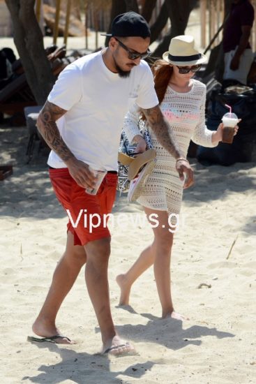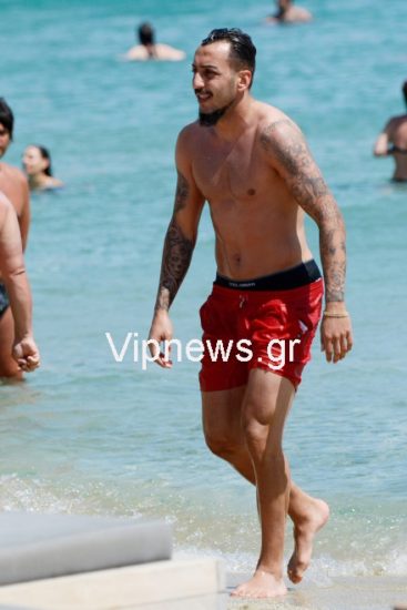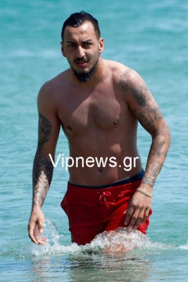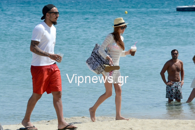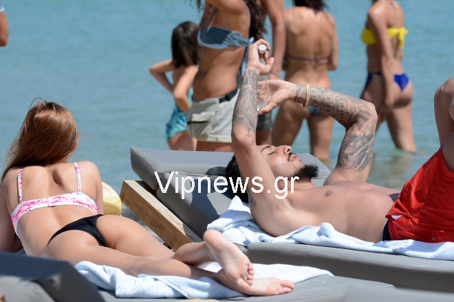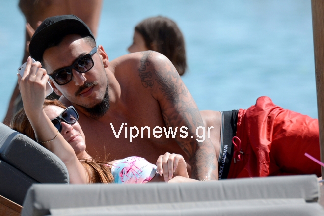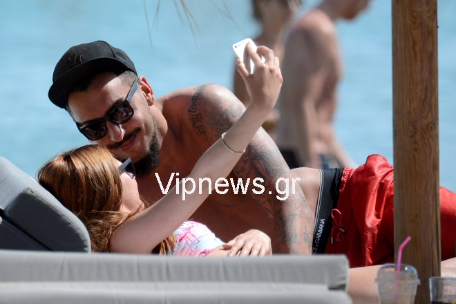 Τον γνωστό ποδοσφαιριστή εντόπισε στο νησί των ανέμων ο φωτογραφικός μας φακός, να χαλαρώνει στην παραλία Καλό Λιβάδι αλλά και να μοιράζεται ρομαντικές στιγμές και κοινές selfie με την αγαπημένη του.
