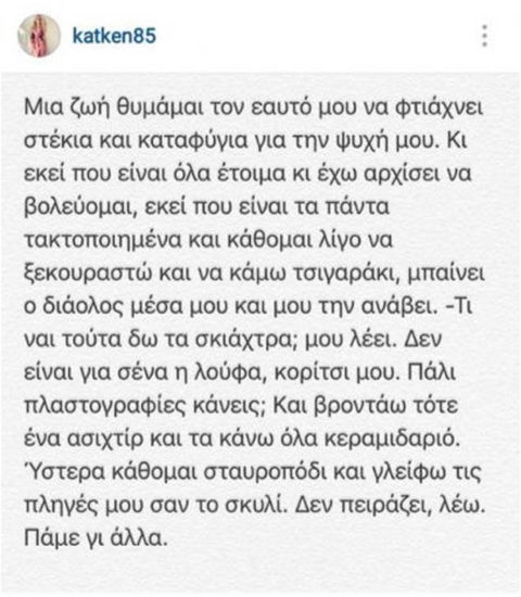Η Κατερίνα Καινούργιου πάντως μέχρι στιγμής δεν έχει σχολιάσει το γεγονός, ωστόσο αρκέστηκε να κάνει μια σχετική ανάρτηση στο προσωπικό της προφίλ στο Instagram.