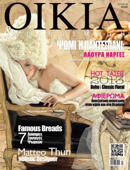 Η Λάουρα πόζαρε ως Μαρία Αντουανέτα, έχοντας στα πόδια της δεκάδες… καρβέλια ψωμί, στο φακό του γνωστού φωτογράφου Γιώργου Καλφαμανώλη για το περιοδικό «Οικία και διακόσμηση».
