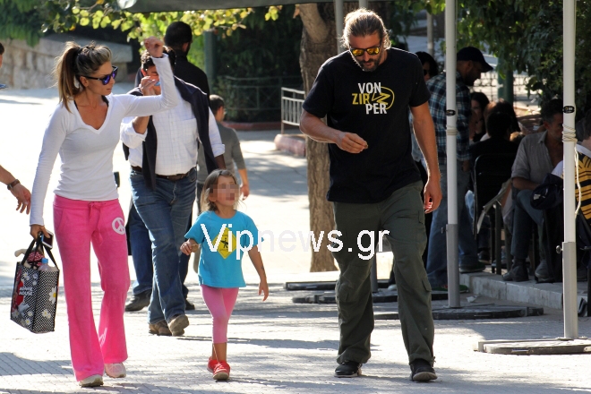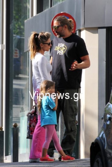 Το ζευγάρι, με sport look, έκανε τη βόλτα του στο Κολωνάκι, όπου ο Νεκτάριος Νικολόπουλος έχει καφετέρια, έχοντας μαζί του τη μικρή Σάρα, που της έχουν μεγάλη αδυναμία.