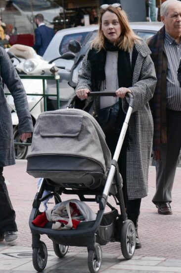 Ο φωτογραφικός φακός μας απαθανάτισε την ευτυχισμένη μητέρα βόλτα στο κέντρο της πόλης με το μωράκι της, το οποίο όταν βαπτιστεί – όπως έχουν πει η Λένα και ο Άκης- πρόκειται να πάρει το όνομά του παπού του, Έλληνα πολιτικού Αναστάσιου Παπαληγούρα.
