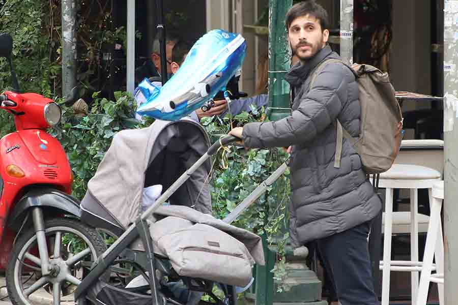 Βόλτα στην Κηφισιά έκανε η Λένα Παπαληγούρα μαζί με τους δύο άντρες της ζωής της.