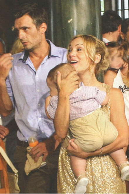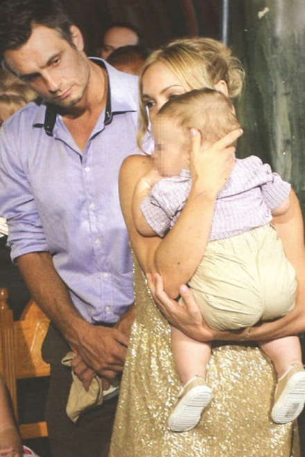 Το μυστήριο τελέστηκε σε στενό οικογενειακό και φιλικό κύκλο και το όνομα που δόθηκε στον μικρό είναι Μάριος. Νονές ήταν οι πρώτες εξαδέλφες της ηθοποιού Ειρήνη και Σταυρούλα Σακκά.