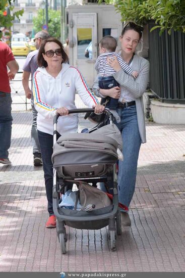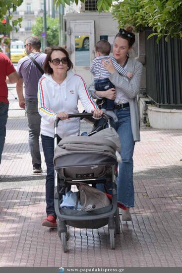 Ο φωτογραφικός μας φακός τη συνάντησε στο κέντρο της Αθήνας να κάνει βόλτα έχοντας στην αγκαλιά το γιο της και να τη συνοδεύει και η μητέρα της.
