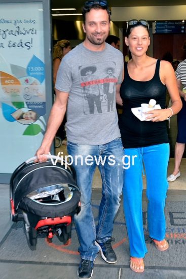 Ο φωτογραφικός φακός συνάντησε τον Γιώργο και την Ανθή ενώ έβγαιναν από το μαιευτήριο έχοντας μαζί τους τον γιό τους και έλαμπαν από ευτυχία.
