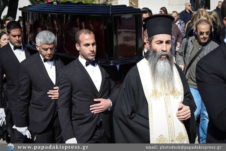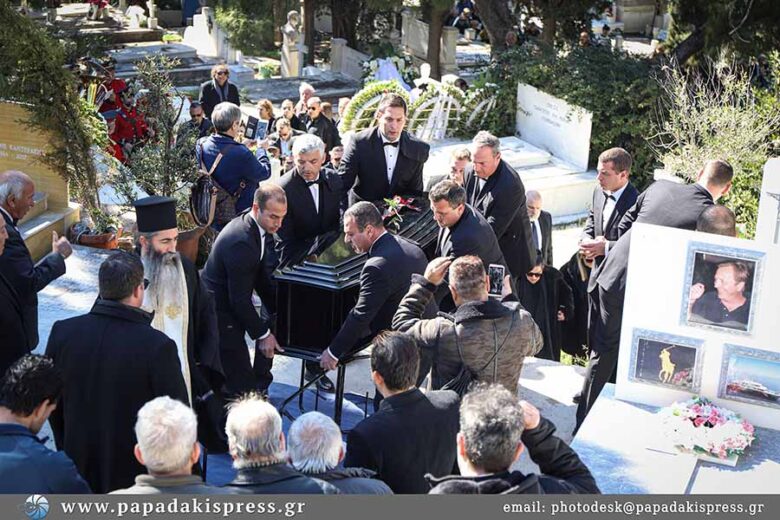 Με δάκρυα στα μάτια και με αβάσταχτο πόνο, η σύζυγος του ηθοποιού Αλίκη Κατσαβού, ακολουθούσε το φέρετρο και αμίλητη και απαρηγόρητη, αποχαιρέτησε τον Κώστα Βουτσά στο μεγάλο του ταξίδι.