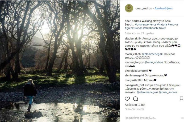 Συγκεκριμένα, ο σύζυγός της παρουσιάστριας του Αlpha δημοσίευσε μια φωτογραφία της στο λογαριασμό που διατηρεί στα social media για την ξενοδοχειακή μονάδα του στην Άνδρο. Στο εν λόγω στιγμιότυπο βλέπουμε την Ελένη Μενεγάκη να κάνει τη βόλτα της στα Άχλα.