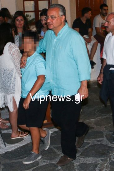 Στα Ματογιάννια τον εντόπισε ο φωτογραφικός μας φακός να περπατά με το γιο του και να είναι τρυφερός και προστατευτικός σε σίγουρα ανθρώπινες στιγμές και μακριά από την εικόνα που έχουμε σχηματίσει για τους πολιτικούς
