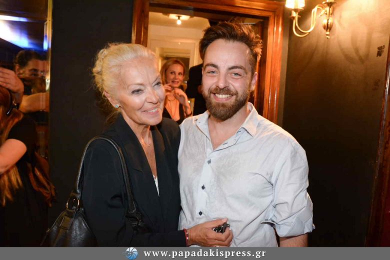 Η Μαρία Αλιφέρη, η οποία εντυπωσίασε στα 67 της χρόνια με την κομψή της εμφάνιση, χειροκρότησε τον ανιψιό της στο νέο του θεατρικό εγχείρημα και στο τέλος της παράστασης πόζαρε χαμογελαστή μαζί του.
