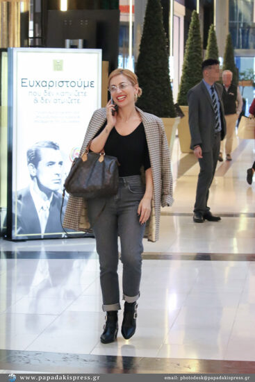 Όσο όμως βρίσκεται στην Ελλάδα, μια από τις αγαπημένες της ασχολίες, είναι να πηγαίνει για βόλτα με φίλους της και να κάνει ψώνια. Ο φωτογραφικός μας φακός, τη συνάντησε σε γνωστό εμπορικό κέντρο των βορείων προαστείων, να κάνει τις αγορές της, σε μια στιλάτη και σικ εμφάνισή της. Φορώντας σκούρο τζιν, μαύρο τοπ και ένα καρό σακάκι η παρουσιάστρια απόλαυσε τη βόλτα της με το χαμόγελο της ευτυχίας ζωγραφισμένο στα χείλη της.