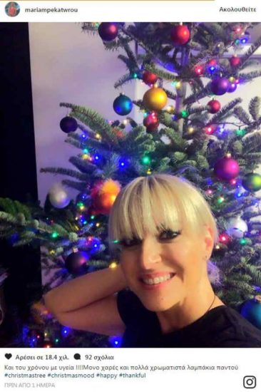 Η παρουσιάστρια του «Still Standing» στόλισε στο σαλόνι του σπιτιού της ένα χριστουγεννιάτικο δέντρο, γεμάτο με πολύχρωμες μπάλες και φωτάκια. Η Μαρία Μπεκατώρου έβγαλε την απαραίτητη selfie φωτογραφία, μπροστά από το δέντρο της και την μοιράστηκε με τους διαδικτυακούς της φίλους.