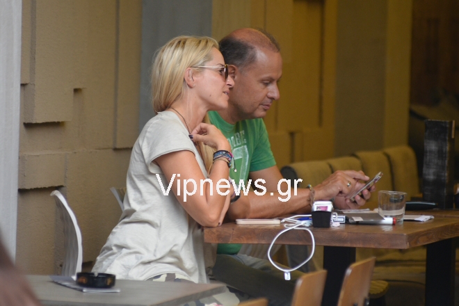 Ο φωτογραφικός μας φακός, εντόπισε την παρουσιάστρια ενώ έπινε καφέ στο μαγαζί, συνοδευόμενη από τον σύζυγό της Αντώνη Αλεβιζόπουλο και τον συνιδιοκτήτη Αλέξανδρο Κοντιζά