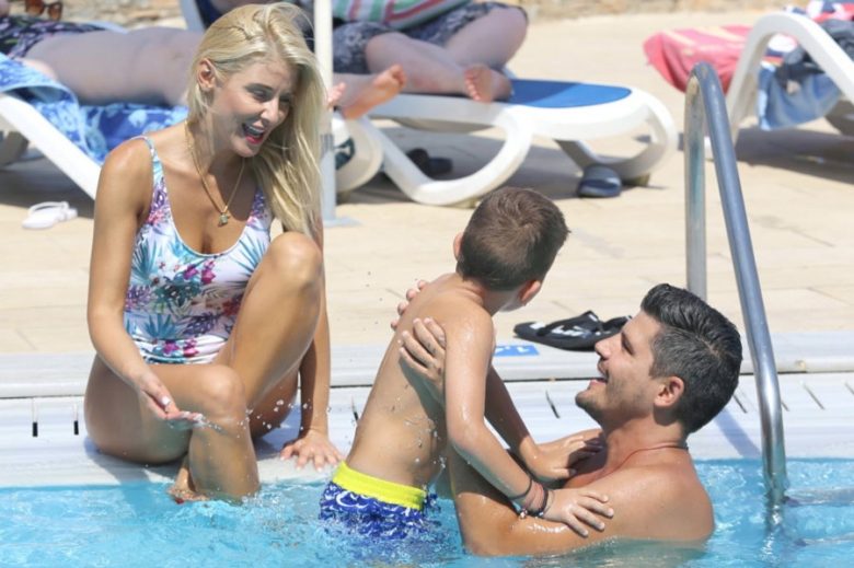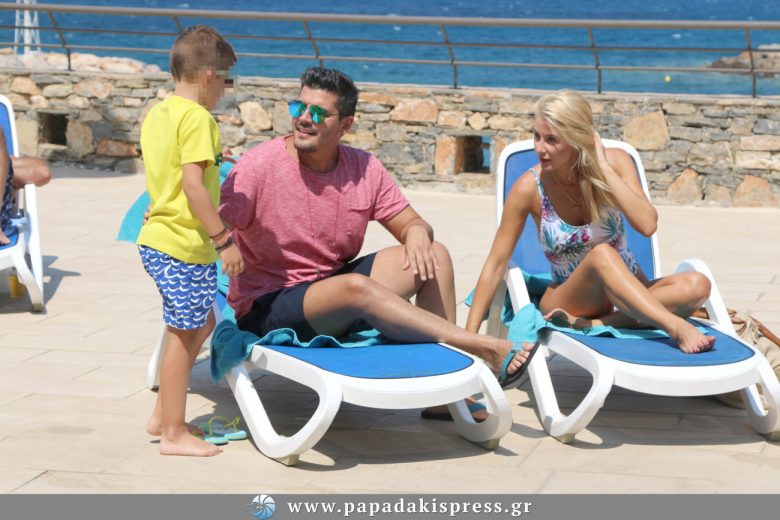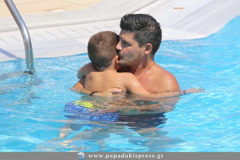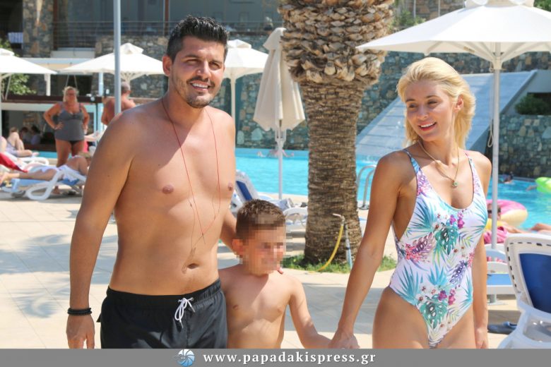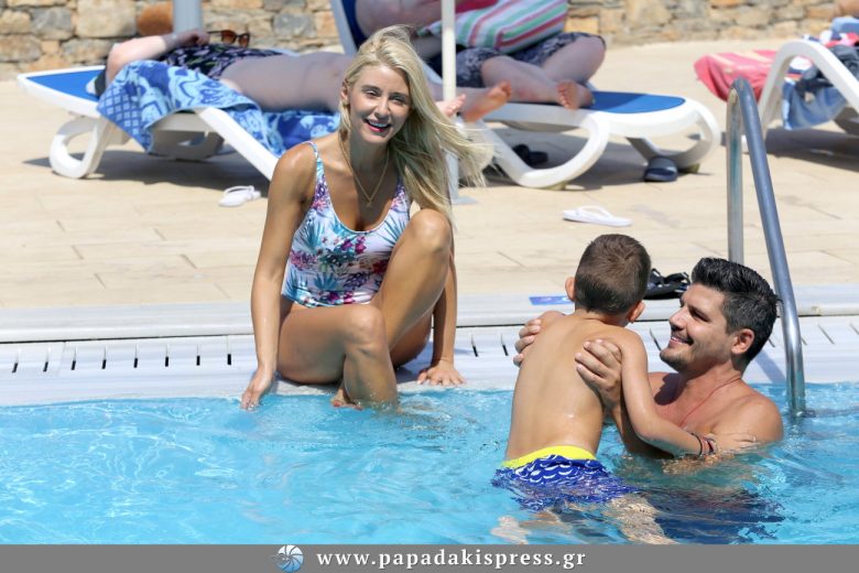 Ο φωτογραφικός μας φακός τους απαθανάτισε να παίζουν στην πισίνα του ξενοδοχείου με τον μονάκριβο γιο τους και να απολαμβάνουν ξέγνοιαστες οικογενειακές στιγμές.