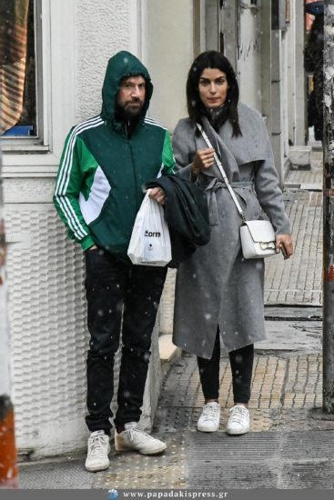 Το ερωτευμένο ζευγάρι βγήκε βόλτα στην Αθήνα και ξαφνικά προέκυψε ανοιξιάτικη μπόρα. Ο λόγος για τον Κωστή Μαραβέγια και την Τόνια Σωτηροπούλου.