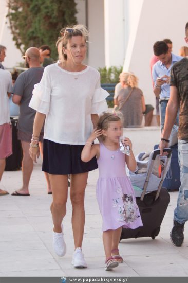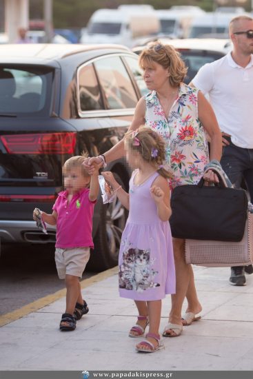 Ο φωτογραφικός μας φακός απαθανάτισε την οικογένεια στο αεροδρόμιο, λίγο πριν την πτήση τους για το εξωτερικό. Στο πλευρό της παρουσιάστριας βρισκόταν η μητέρα της, Αγλαϊα, η οποία δεν έχασε στιγμή από τα μάτια της τα δυο της εγγόνια, Mάργκω και Σπύρο.