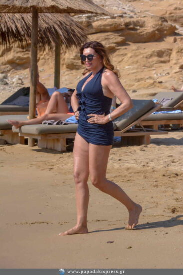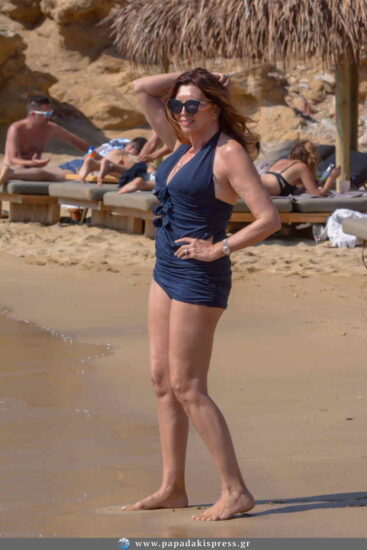 Αυτό που σίγουρα μας έκανε αίσθηση, είναι το καλοδιατηρημένο και γυμνασμένο σώμα της Μιμής Ντενίση, η οποία το τόνιζε και με ένα υπέροχο, ολόσωμο μαγιό.