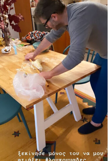 Παράλλλα προσπαθεί να κάνει την καθημερινότητά του, όσο πιο ευχάριστη γίνεται, όπως φαίνεται και από τοις αναρτήσεις τους στο διαδίκτυο. Από τα instastories της Λένας Δροσάκη, βλέπουμε τον Αλέξανδρο Μπουρδούμη να ανοίγει φύλο με τον πλάστη, να κάνει λουκουμάδες όπως του έδειξε η Δέσποινα Βανδή αλλά και να φτιάχνει πίτσα, ενώ δε λείπουν όπως βλέπουμε και τα πιτόγυρα.