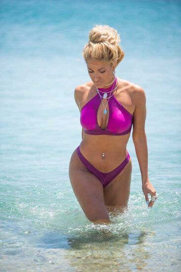 Ιδιαίτερα με τα μαγιό που αναδεικνύουν το πλούσιο μπούστο της όπως αυτό της εταιρείας Bubblegun, το οποίο έκανε πολλούς στο πέρασμά της να μείνουν με το στόμα ανοιχτό. Έτσι με ακόμη μια σέξι εμφάνισή της στο Pasaji στον Ορνό της Μυκόνου, η πρώην παίχτρια του My Style Rocks, ανέβασε τη θερμοκρασία στα ύψη κι έκανε τον ανδρικό πληθυσμό να παραληρεί.