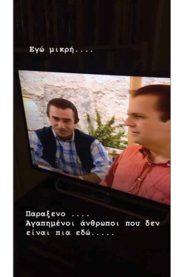 Με μια φωτογραφία που βλέπουμε την ίδια να πρωταγωνιστεί στη σειρά, η Μυρτώ Αλικάκη σχολιάζει: «Εγώ μικρή». Στην επόμενη ανάρτησή της, η ηθοποιός ανέβασε ένα καρέ με τον αξέχαστο ηθοποιό Μηνά Χατζησάββα και το εξής σχόλιο: «Παράξενο, αγαπημένοι άνθρωποι που δεν είναι πια εδώ».