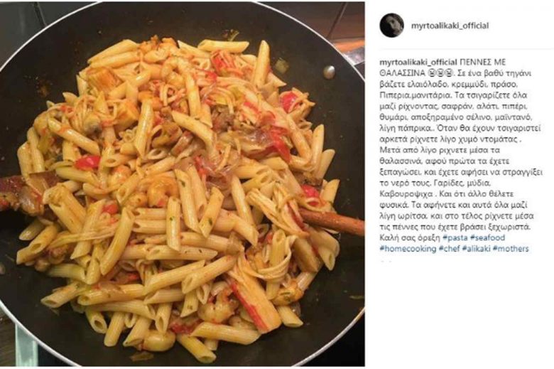 Η Μυρτώ Αλικάκη ανέβασε στο προφίλ της στο Instagram μια φωτογραφία από την προετοιμασία του φαγητού, με την ηθοποιό να μοιράζεται στη λεζάντα της ανάρτησής της τη συνταγή της λαχταριστής μακαρονάδας.