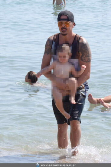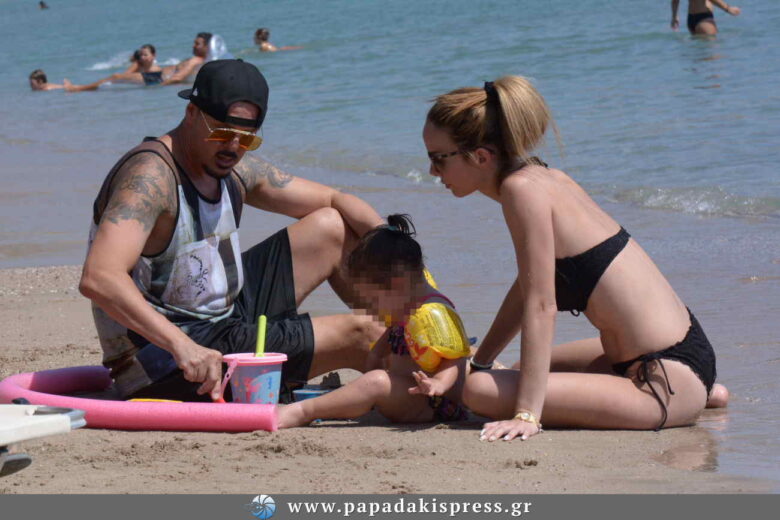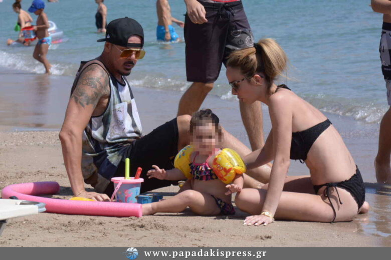 Ο τραγουδιστής, πέρασε λίγες ώρες για χαλάρωση και παιχνίδι στην παραλία της Βάρκιζας μαζί με τη σύζυγό του Όλγα Καρπαθάκη και την κορούλα τους.
