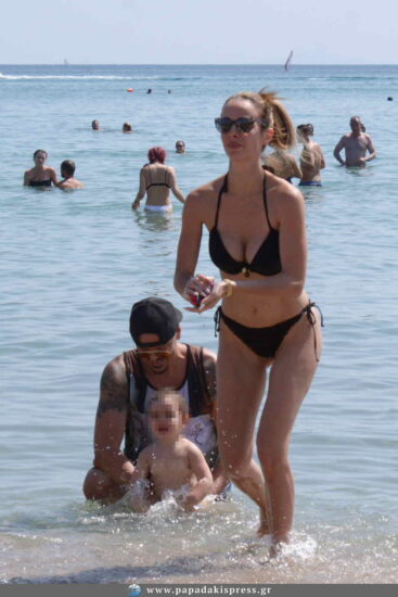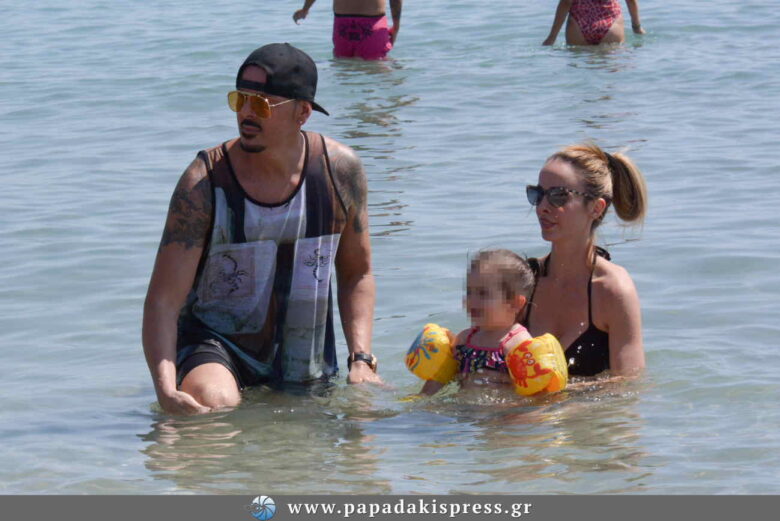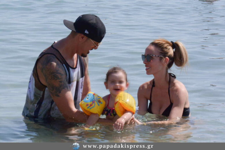 Το ζευγάρι απολάμβανε τη μικρή που χαιρόταν την άμμο και τη θάλασσα και όλοι μαζί διασκέδαζαν και γελούσαν από ευτυχία. Ο Νίκος Βουρλιώτης, κλασικός «χαζομπαμπάς», δεν έφυγε στιγμή δίπλα από την κορούλα του με την οποία πέρασε πολλή ώρα τόσο μέσα όσο και έξω από το νερό παίζοντας σα μικρό παιδί.
