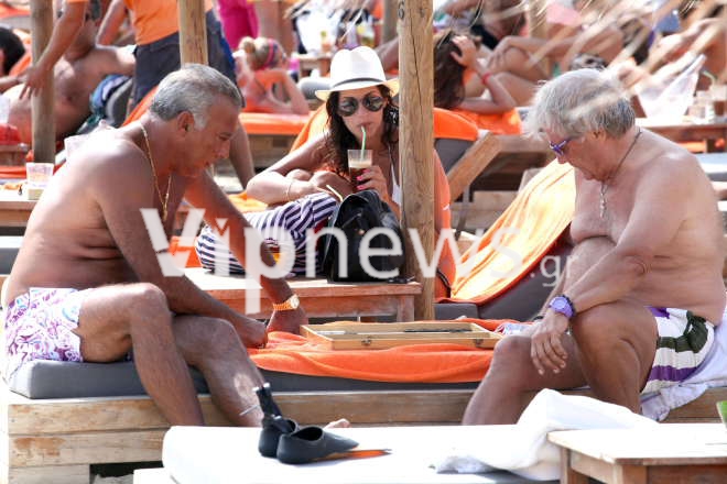 Στα μεσοδιαστήματα ο Νίκος Γκάλης, βρίσκει λίγο χρόνο και για ένα ταβλάκι με φίλους στις ξαπλώστρες, αγαπημένη καλοκαιρινή συνήθεια των περισσοτέρων! Φανατικός ταβλαδόρος και ο επιχειρηματίας Νίκος Βαρβέρης, που επίσης περνάει τις διακοπές του στο Νησί των Ανέμων.