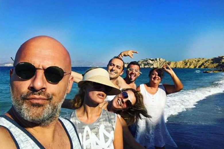 Ο παρουσιαστής και ηθοποιός μαζί με την Ζέτα Μακρυπούλια, την Ελισάβετ Κωνσταντινίδου, τον Θανάση Αλευρά, την Ματίνα Νικολάου και τον Γιώργο Δάσκαλο κάνουν τις διακοπές τους στα ελληνικά νησιά και περνούν στιγμές χαλάρωσης.