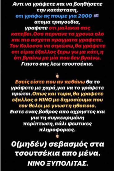 Με αυστηρό και κατηγορηματικό τρόπο διαψεύδει ο Νίνο τα δημοσιεύματα που τον θέλουν να είναι ζευγάρι με την Δανάη Μπάρκα.