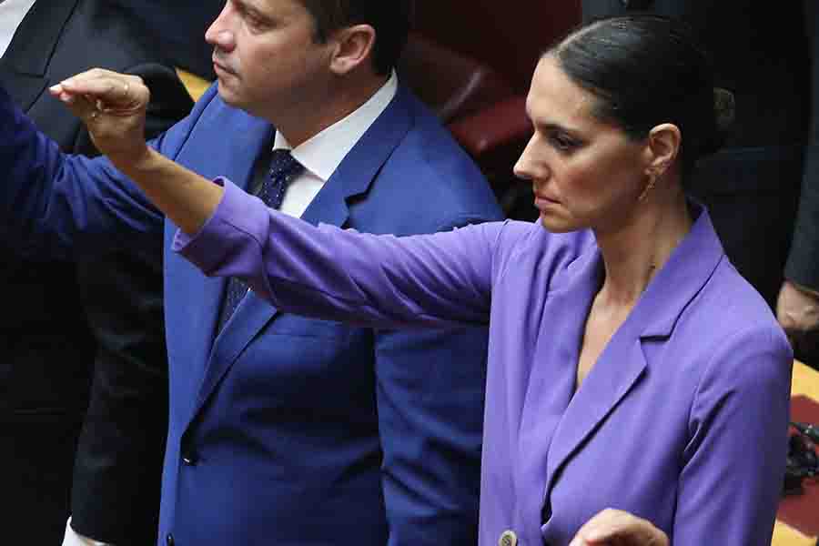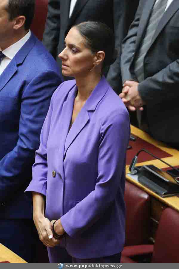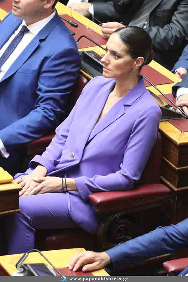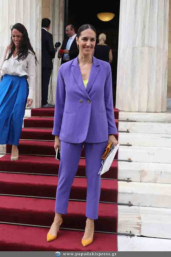 Με ένα εντυπωσιακό μοβ κουστούμι με το οποίο έκλεψε τις εντυπώσεις, εμφανίστηκε στη Βουλή νεοεκλεγείσα βουλευτής Νόνη Δούνια.