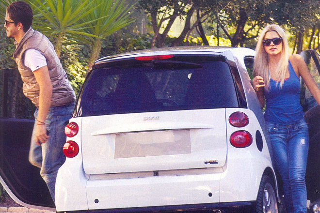 Αφού κατέβηκαν στάθμευσαν κοντά στο σπίτι, εκείνος κατέβηκε από τη θέση του οδηγού, σύμφωνα με το περιοδικό και αντάλλαξαν αγκαλιές και φιλιά, πριν εκείνη αναχωρήσει για το αυτοκίνητό της.