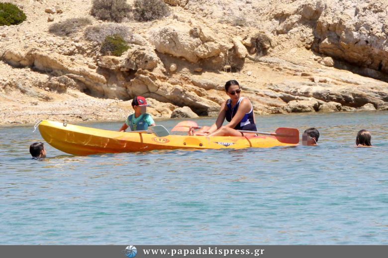 Το ζευγάρι, το οποίο περιμένει μέσα στο φθινόπωρο τον ερχομό του πέμπτου τους παιδιού, απολαμβάνει τις βουτιές του, κάνει τις βόλτες του στα γραφικά σοκάκια του κυκλαδίτικου νησιού και περνάει ξέγνοιαστες στιγμές. Η Ολυμπία Χοψονίδου, παρόλο που ήδη διανύει τον έκτο μήνα της εγκυμοσύνης της και η κοιλίτσα της είναι αρκετά φουσκωμένη, έκανε κανό με τα παιδιά της στη θάλασσα και χάρηκε μαζί τους το παιχνίδι στη θάλασσα.