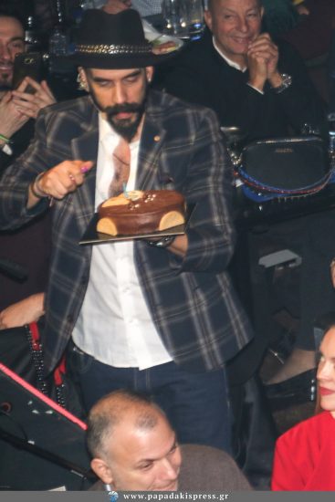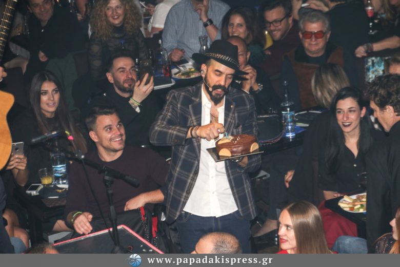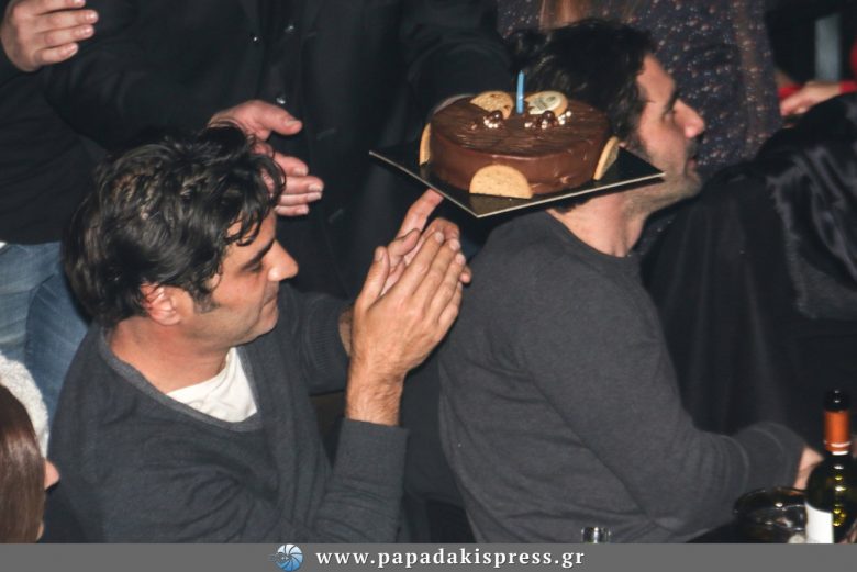Ο τραγουδιστής, έχοντας πληροφορηθεί την παρουσία του ηθοποιού στο μαγαζί, διέκοψε λίγο μετά τις δώδεκα το μουσικό του πρόγραμμα και κρατώντας μια τούρτα βρέθηκε στο τραπέζι του Χριστόφορου Παπακαλιάτη, για να του ευχηθεί για τα γενέθλιά του.