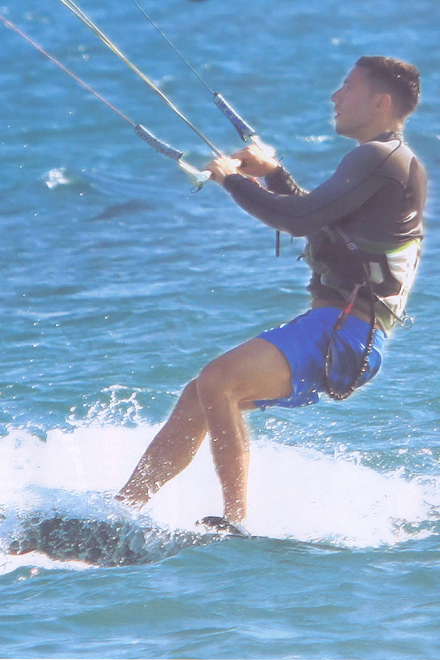 Ο φωτογραφικός φακός του περιοδικού ΟΚ! τον αποθανάτισε στην παραλία Πούντα του νησιού, να επιδίδεται με δεξιοτεχνία στο kite surfing, από τα πιο αγαπημένα του θαλάσσια σπορ στο οποίο, σύμφωνα με το ρεπορτάζ του περιοδικού, είναι ιδιαίτερα έμπειρος.