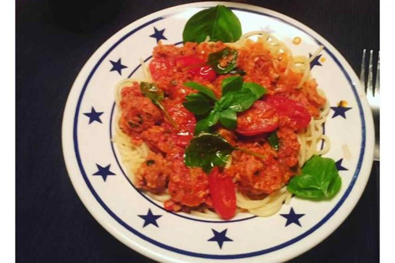 O Πέτρος φωτογράφισε το γεύμα του και το ανέβασε στα social media, γράφοντας στη λεζάντα: « Μακαρόνια με λουκάνικο chorizo, φρέσκα ντοματίνια και χειμωνιάτικο βασιλικό.. Cool… Για ταινία..».