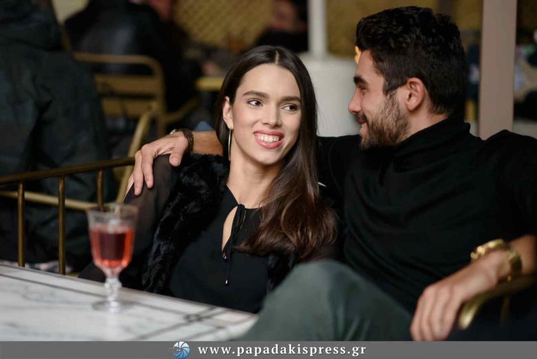 Ο Παναγιώτης Βασιλάκος και η 19χρονη σύντροφός του, με την οποία είναι σε σχέση εδώ και δύο χρόνια, απόλαυσαν το ποτό τους και δε σταμάτησαν να ανταλλάσσουν τρυφερά χάδια και φιλιά.