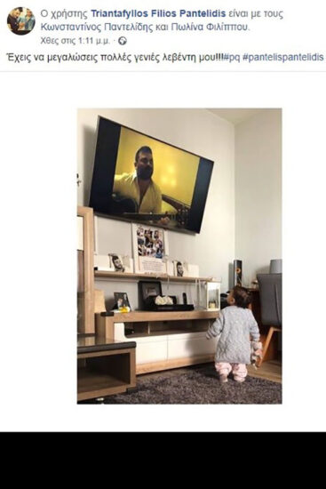 Ο αδελφός του Τριαντάφυλλος, δεν τον ξεχνά και σήμερα, 4 χρόνια μετά το θάνατό του, έκανε δύο συγκινητικές αναρτήσεις. Στη μια δημοσίευσε μια φωτογραφία με την ενός έτους κόρη του να παρακολουθεί σε video τον αδελφό του να ερμηνεύει μια από τις επιτυχίες του, με το σχόλιο: «Έχεις να μεγαλώσεις πολλές γενιές λεβέντη μου!!!#pq #pantelispantelidis».