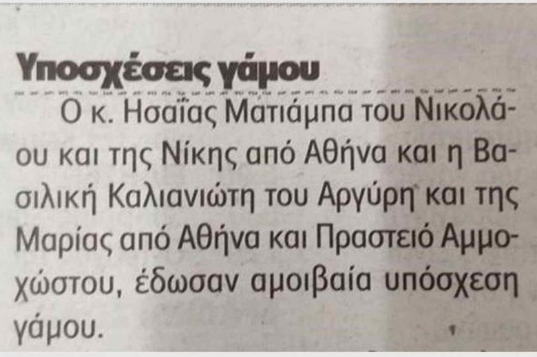 Tα σκαλιά της Εκκλησίας ετοιμάζεται να ανέβει ο Ησαΐας Ματιάμπα με την επί χρόνια αγαπημένη του, Βασιλική Καλανιώτη.