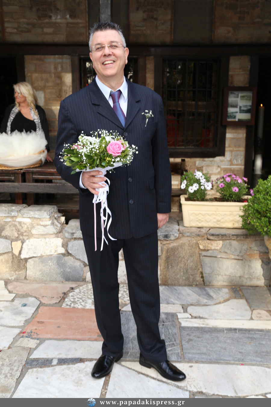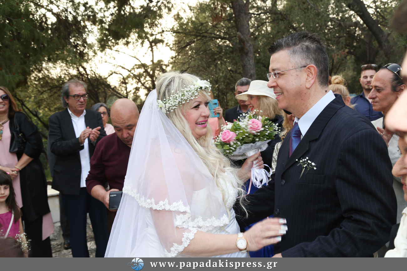 Τα σκαλιά της εκκλησίας ανέβηκε ο Δήμος Μυλωνάς με την αγαπημένη του Φωτεινή Κωνσταντινίδη.