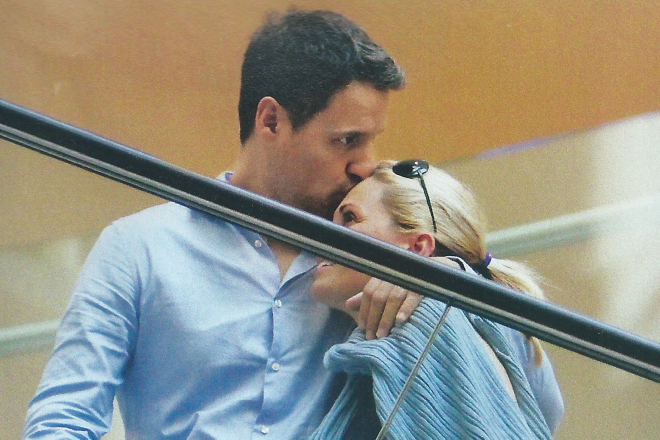 Το περιοδικό εντόπισε το ερωτευμένο ζευγάρι στo εμπορικό κέντρο Golden Hall να κάνει τις αγορές του, να πίνει καφέ και φυσικά να απολαμβάνει την ευτυχία και τον έρωτά του.