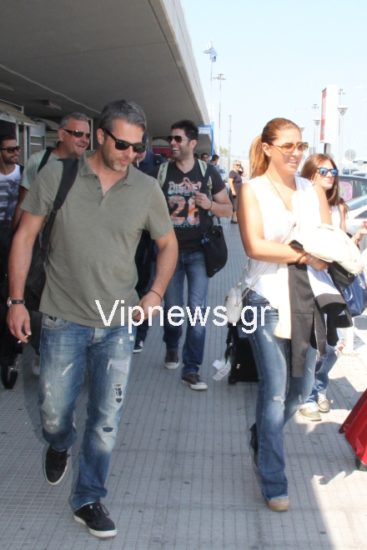 Το ερωτευμένο ζευγάρι έφτασε στο αεροδρόμιο Μακεδονία πιασμένο χέρι – χέρι και δεν σταμάτησαν στιγμή να χαμογελούν και να μην ενοχλούνται καθόλου από τη παρουσία των φωτογραφικών καμερών.
