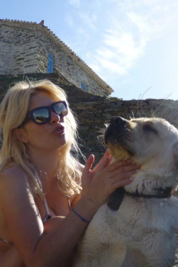 Ο σκύλος φαίνεται να την ακολουθεί παντού και η ίδια να απολαμβάνει τα παιχνίδια μαζί του.