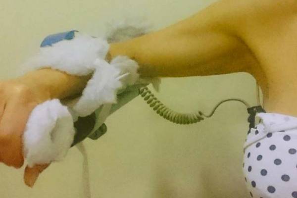 Ένα πρόβλημα στο χέρι της έχει το τελευταίo διάστημα η Βίκυ Χατζηβασιλείου, η οποία ωστόσο το αντιμετωπίζει με χιούμορ όπως είδαμε και στην φωτογραφία που ανέβασε στο προσωπικό της προφίλ στο Instagram.