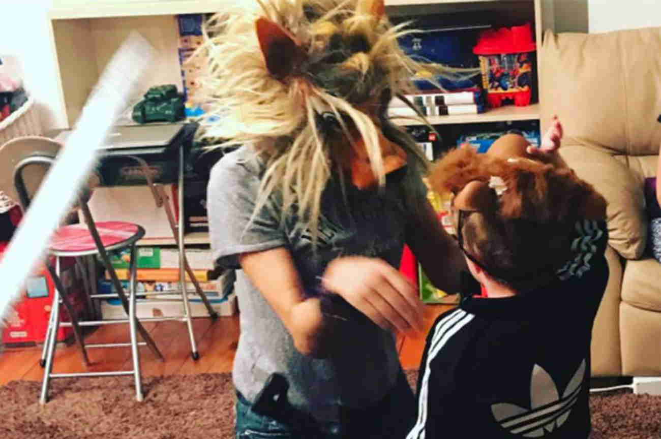 Η τραγουδίστρια μάλιστα δεν δίστασε να βάλει ακόμη και τη μάσκα του κακού λύκου προκειμένου να διασκεδάσει το παιδάκι!