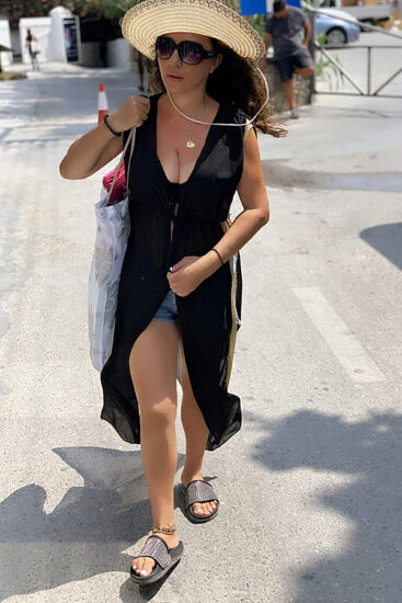 Ο φωτογραφικός φακός απαθανάτισε την τραγουδίστρια να απολαμβάνει την βόλτα της στους δρόμους του νησιού και όπως ήταν αναμενόμενο “τράβηξε” τα βλέμματα με την αποκαλυπτική εμφάνιση της.