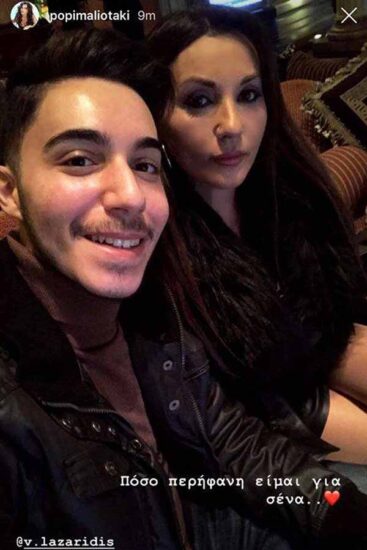 Η ίδια, δημοσίευσε μία φωτογραφία όπου ποζάρει με τον κούκλο 19χρονο γιο της Βασίλη Λαζαρίδη, στον προσωπικό της λογαριασμό στο instagram. Ο γιος της έγινε πρόσφατα 19 ετών και σπουδάζει δημοσιογραφία. «Πόσο περήφανη είμαι για σένα..», ήταν το κείμενο που συνόδευε τη φωτογραφία στο instagram story της.