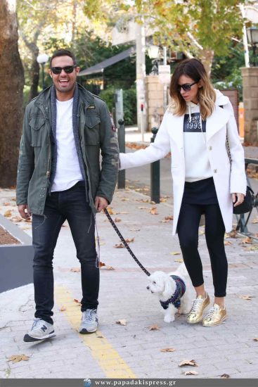 Το ζευγάρι, το οποίο το καλοκαίρι που μας πέρασε αντάλλαξε όρκους αιώνιας πίστης και αγάπης στην Κύπρο, βρέθηκε λίγες μέρες πριν τα Χριστούγεννα στην Κηφισιά, όπου απόλαυσε τη βόλτα του.